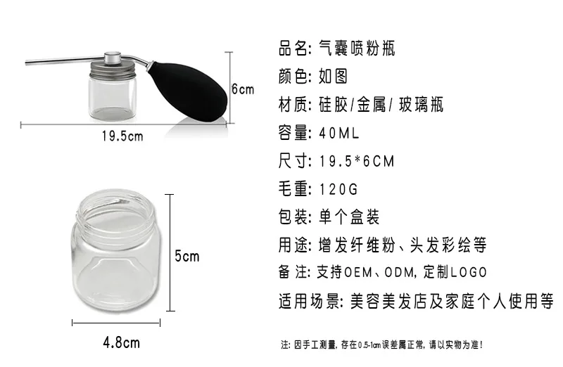Refillable Hair Salon Spray Bottle Barber w Fiber Application Glass Talcum Powder Container